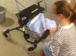 We maken de tilliften, rollators en rolstoelen schoon en indien nodig pompen we met een professioneel apparaat de banden op. Dit laatste apparaat zijn we nog niet helemaal gewend want we schrikken nog steeds van de herrie die het maakt maar dat maakt het ook weer leuk, dat onverwachtse.....